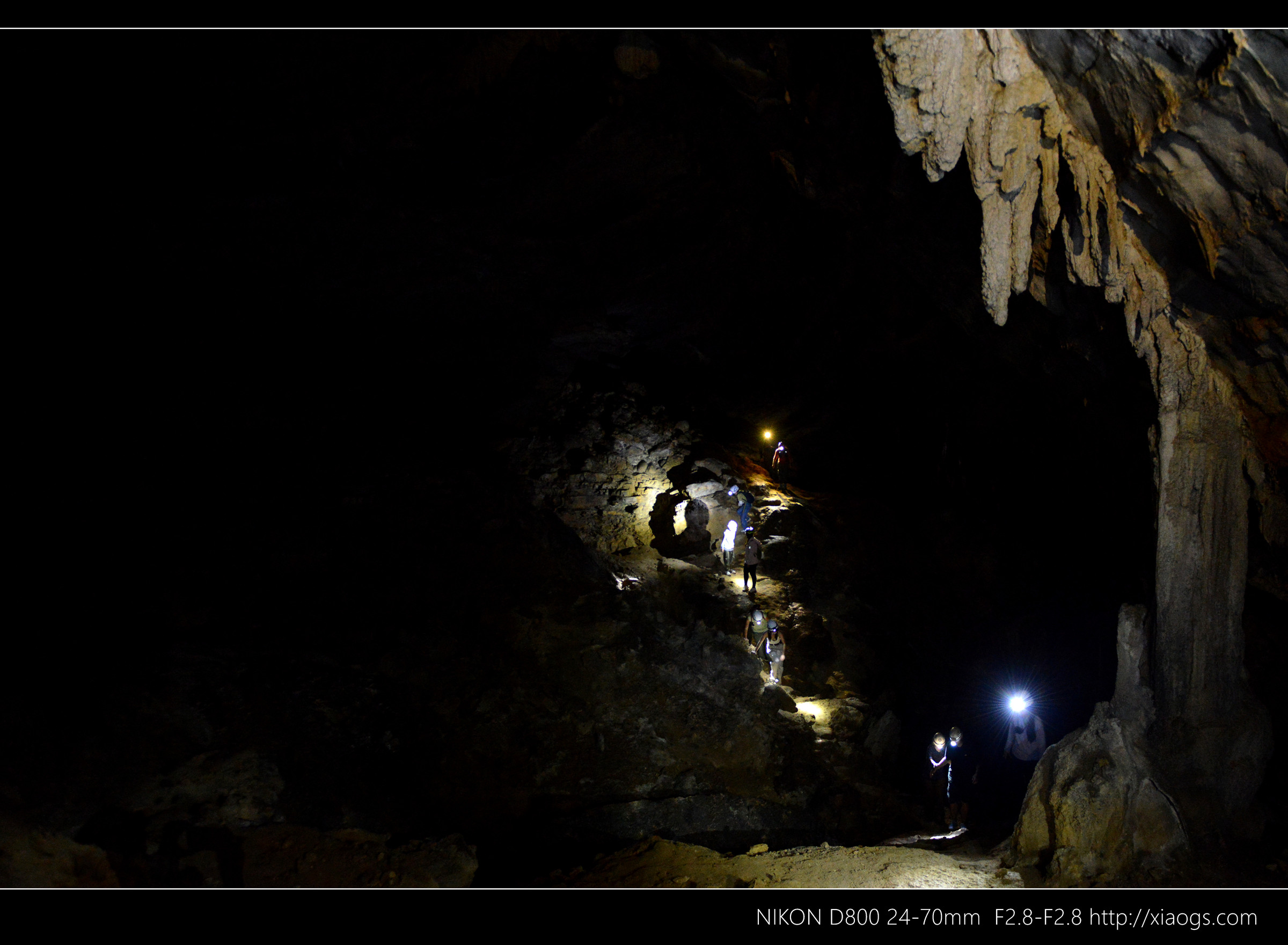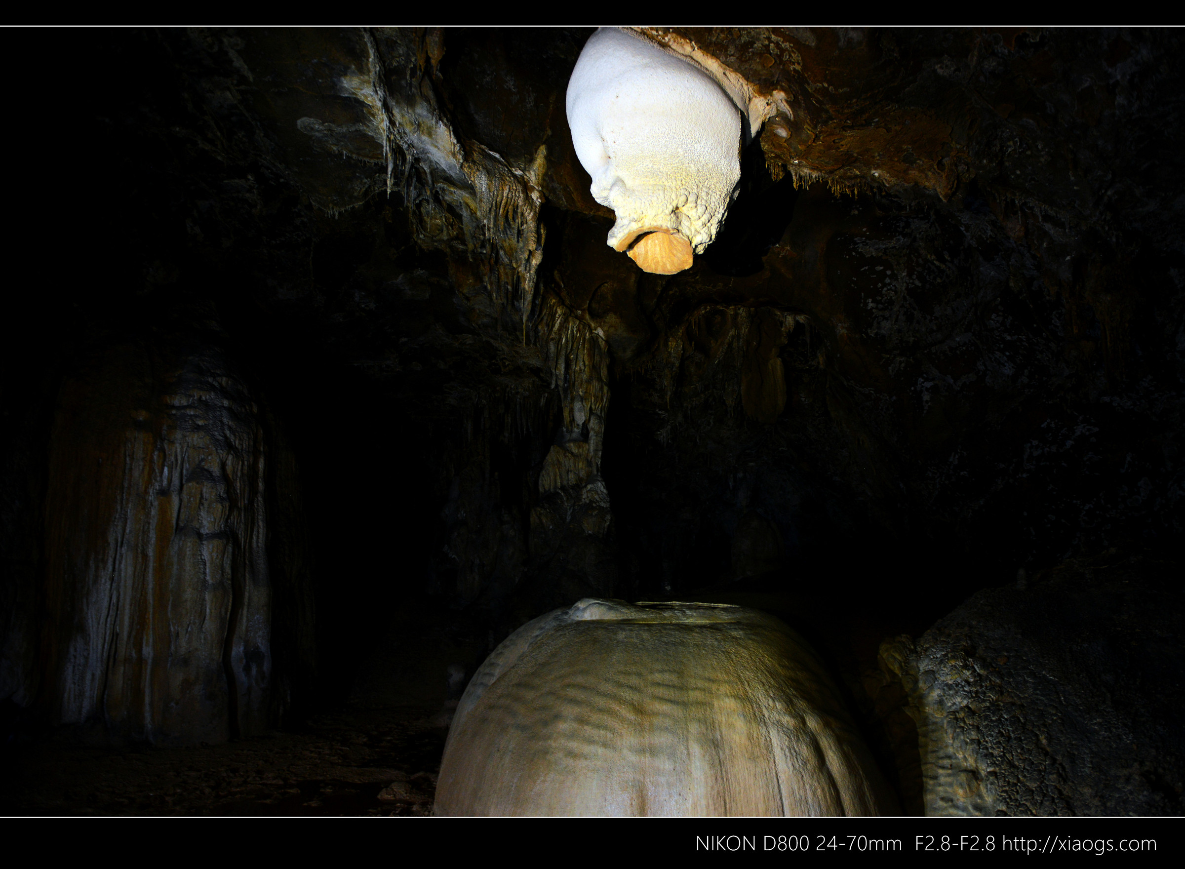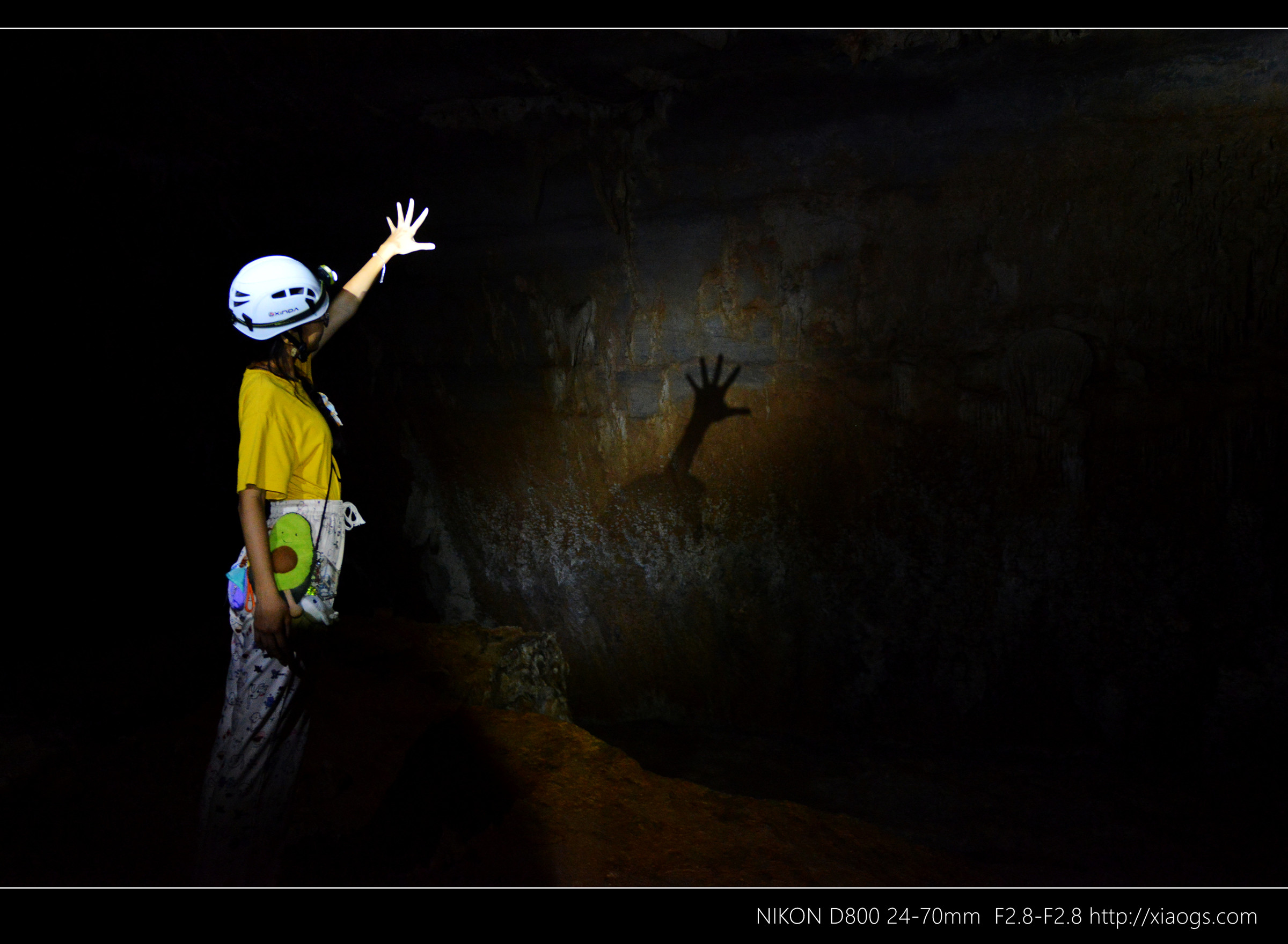 要走到这里,会有很长一段艰难的路,在地下的溶洞内要经过悬崖、台阶、小河等,而且地面是融合了碳酸钙的泥,很滑,多数情况下要手脚并用,但仍不免摔跤。她们都摔了一身泥,我也撞破了膝盖。走了一个半小时终到,却很值得。