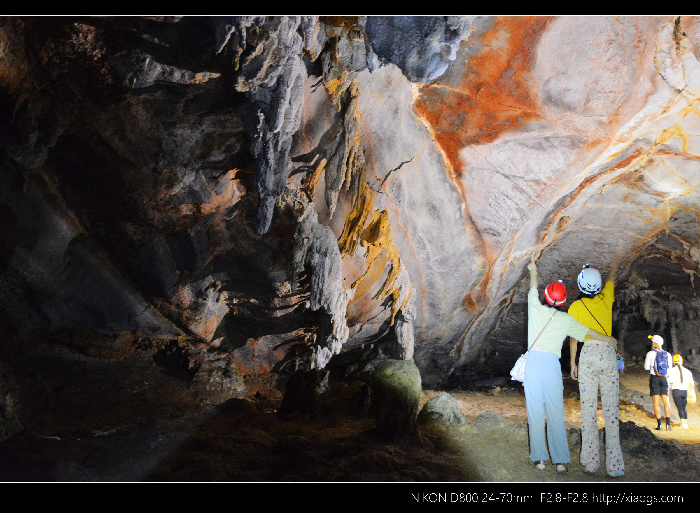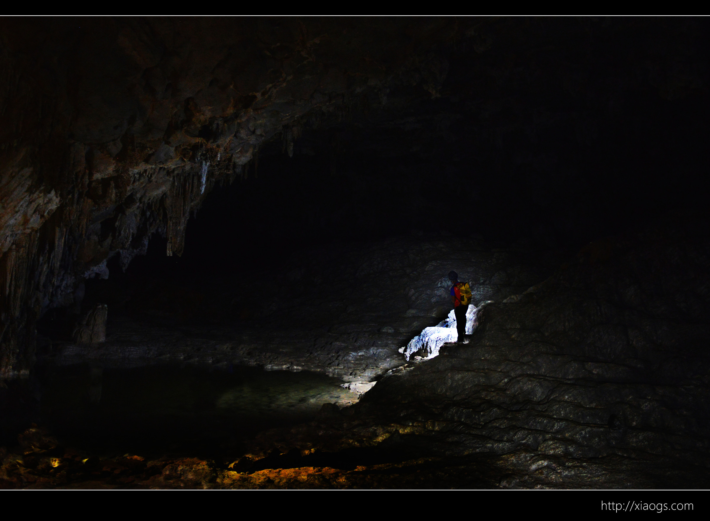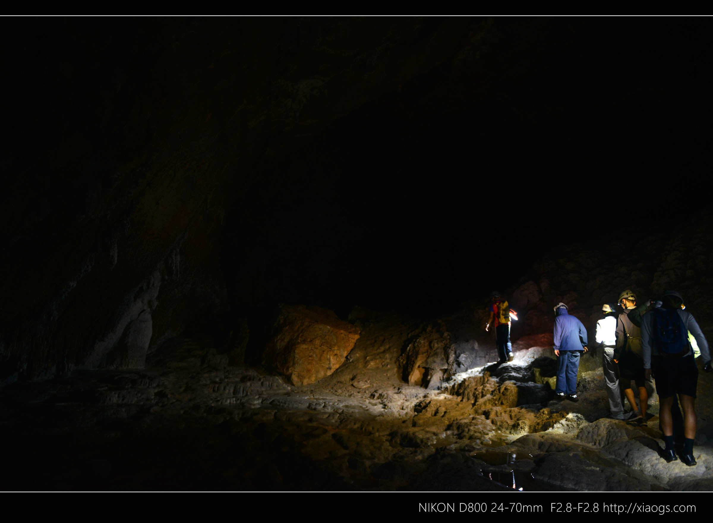 要走到这里,会有很长一段艰难的路,在地下的溶洞内要经过悬崖、台阶、小河等,而且地面是融合了碳酸钙的泥,很滑,多数情况下要手脚并用,但仍不免摔跤。她们都摔了一身泥,我也撞破了膝盖。走了一个半小时终到,却很值得。