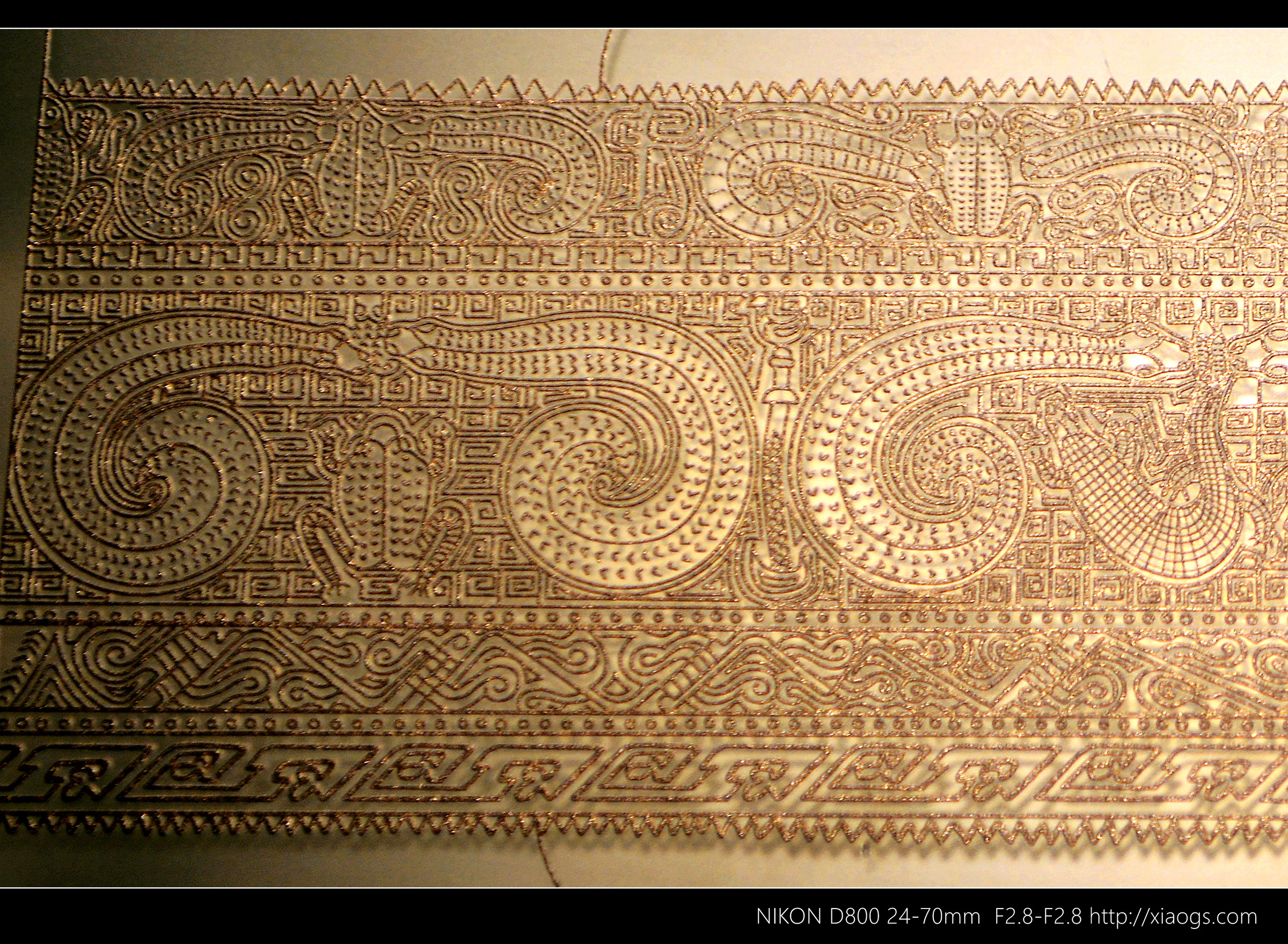 同样,看看它精细到令人咂舌的纹饰,中间的四叶装饰,空隙间还刻了两鹿两凤。
