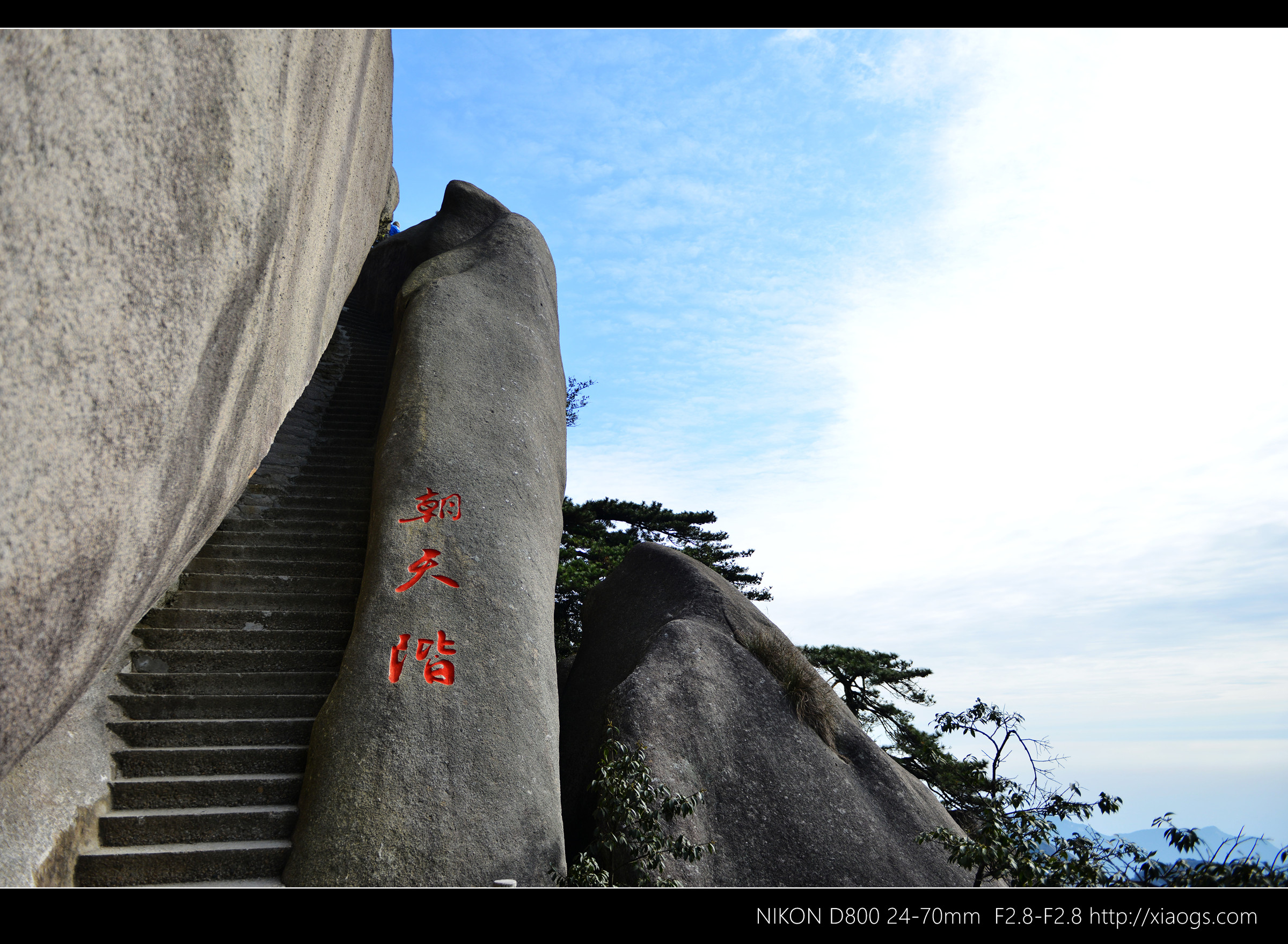 十一点十五,到达莲花峰。因峰顶巨石竖裂如莲瓣,而得名。