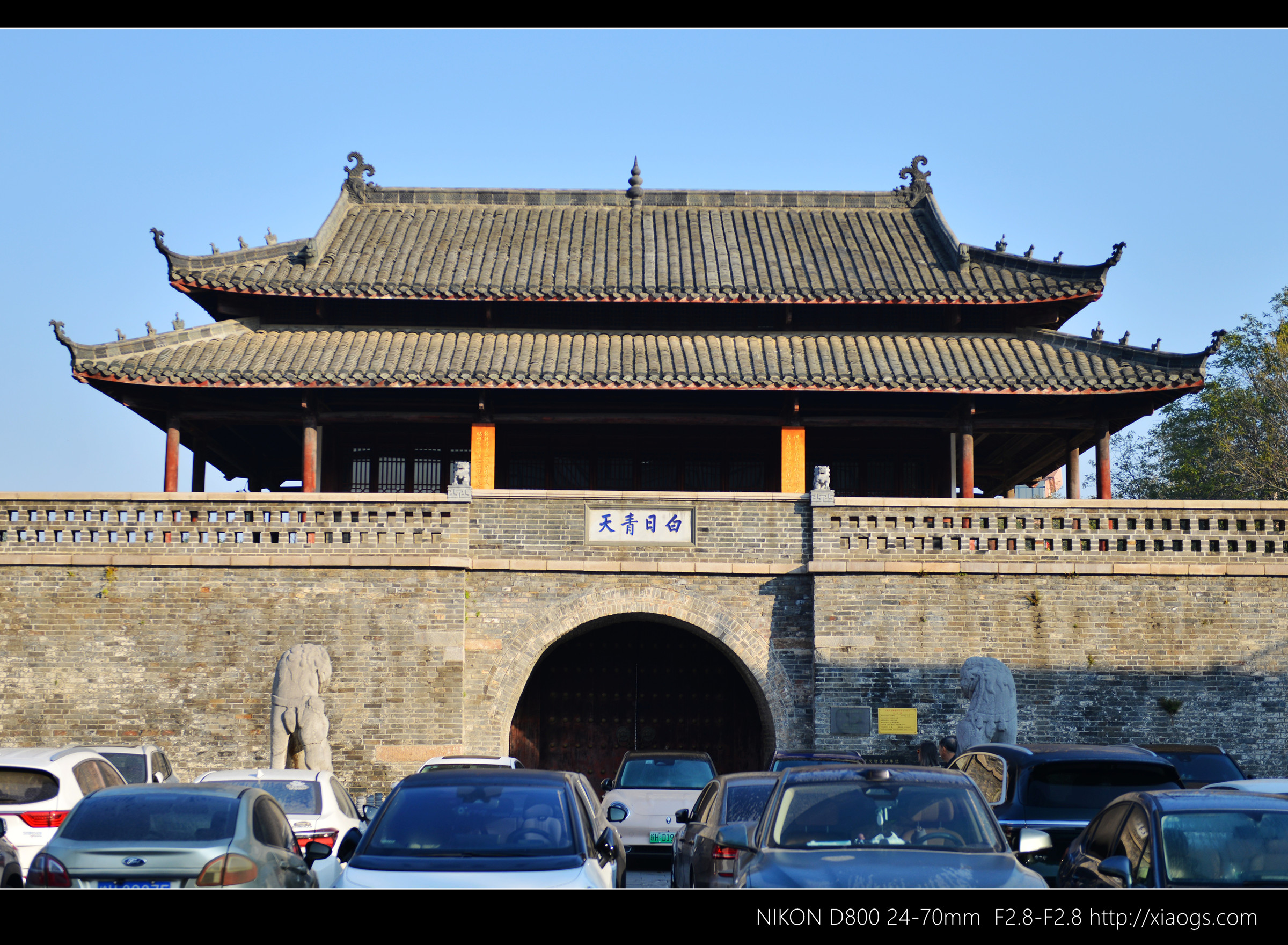 从步行街出来,走路至谯楼,它是安庆市内为数不多的古建筑。始建于元,后在明初毁于战争,现存建筑为清同治六年(公元1867年)所建,砖木结构,重檐歇山顶。非常气派,原是作为城池的望楼,兼具瞭望和报时功能,明清时还作为官府的门楼。上书“白日青天”四字。