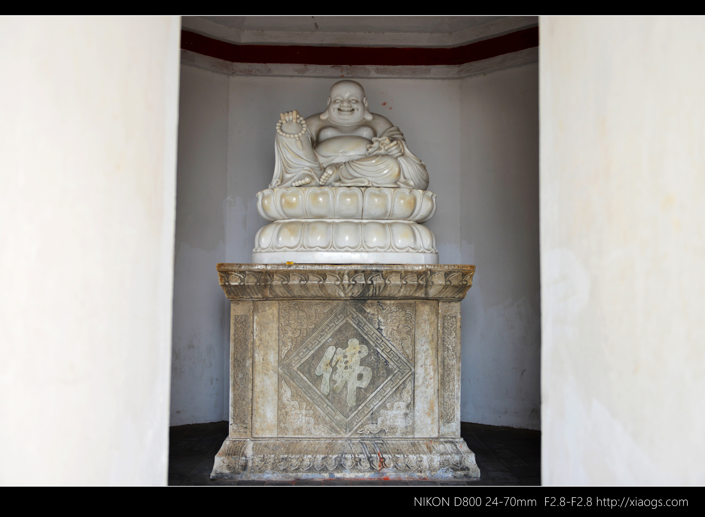 山门这块匾上的三个漆金大字是光绪帝的御笔。仔细看的话,“寺”字少了一点。民间传言是光绪帝对自己大权旁落感到遗憾,表达江山不圆满,所以故意如此。首先呢,这肯定不是错字,皇帝的御笔题字需经大臣、翰林、太监多道审核,基本不可能出现真正的笔误。但中国的毛笔书法,又兼具了文字、艺术、心境的三重表达,“寺”字少一点,有助于行书连贯,是书法中的常见创作,类似的连笔简化字很多;况且,清代皇帝的题匾,时常有缺笔、添笔的传统,康熙、雍正、乾隆都有先例和具体实物留存,来表达某种寓意,供人揣测。