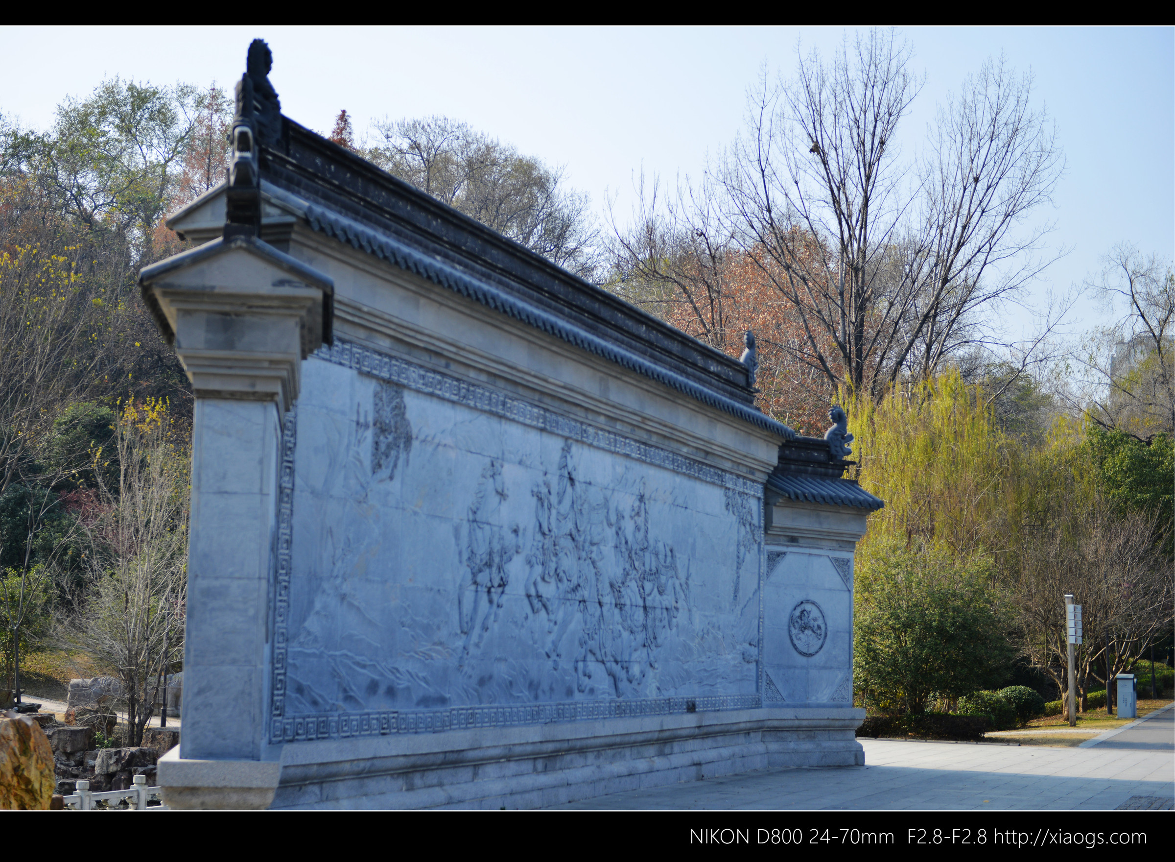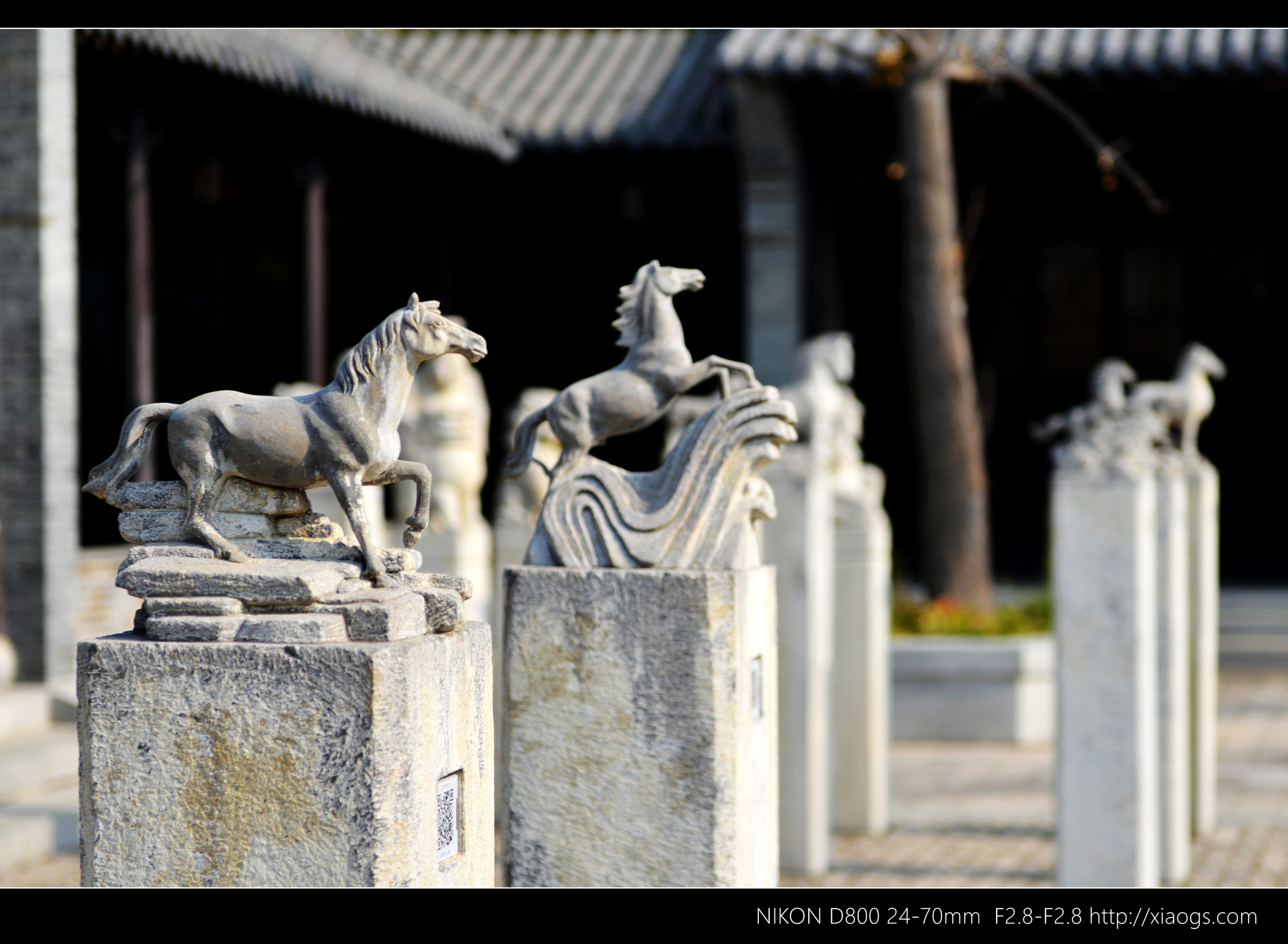 门口的影壁,上有八骏图雕刻。